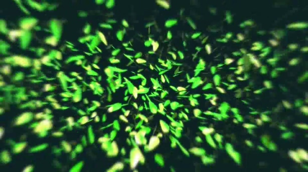这是一个环保主题的视频模板,标志由绿色的点状图案组成,形成一个抽象的叶子形状...
